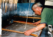 県の名工や町の無形文化財に指定された、6代目豊川秀雄さんの見事な手漉きをつぶさに見学できます。